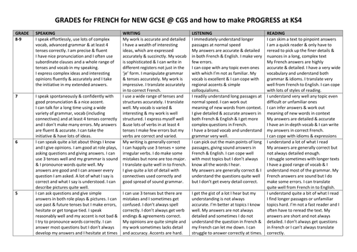 Grade Descriptors For French For The New Gcse Teaching Resources